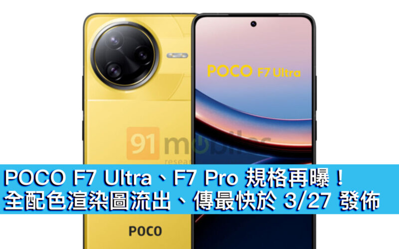 POCO F7 Ultra、F7 Pro 規格再曝!全配色渲染圖流出、傳最快在 3/27 發佈