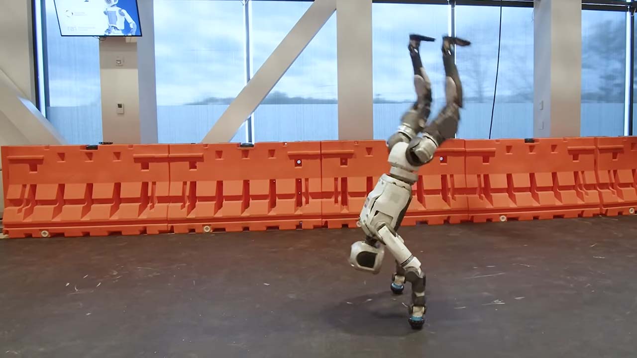 Boston Dynamics 在7年前發布的影片,就已看到Atlas 能做出後空翻動作,不過當時它的身形仍顯得笨重,而且是液壓系統,如今它已進化到全電動,關節變得更緊湊、瘦身完全成功,動作乾脆俐落。