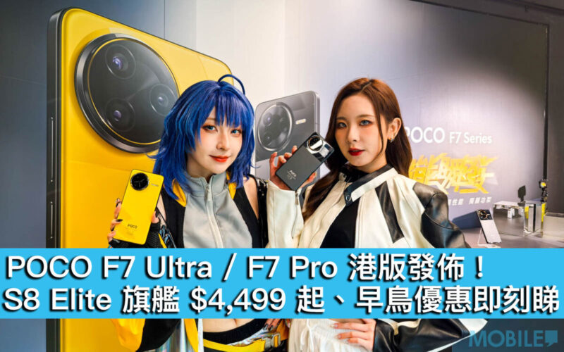 【MOBILE】上週於海外發表的 POCO 旗艦手機 F7 Series,日前在港正式登場,且價格甚至更為吸引。其中 S8 Elite 旗艦 F7 Ultra 入場價低至 $4,499 不到 4 千 5 港元,配備 8G3 晶片的 F7 Pro,更以低至 $3,399 不到 3 千 4 港元價格上架,力壓同價位中階手機。