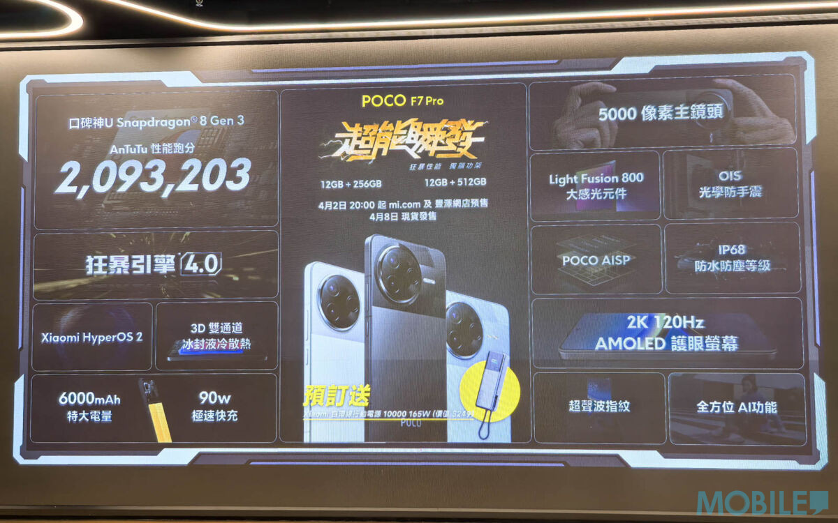 據小米香港公佈資訊,POCO F7 Series 於4月2日 8 時開放預售,並在 4 月 8 日(下週二)正式開賣。