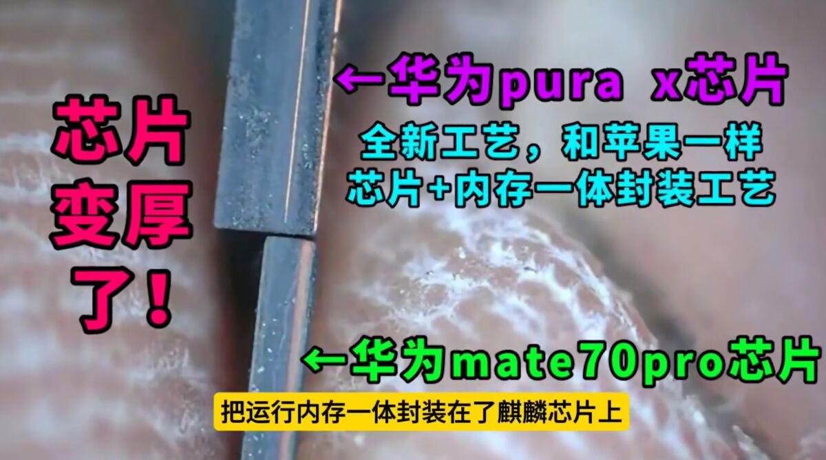 著名拆機博主楊長順近日豪擲萬元入手全新上市的HUAWEI Pura X,並大膽拆解,揭開了 Kirin 9020 處理器的神秘面紗。結果發現,這枚命名看似熟悉的「Kirin芯」竟暗藏顛覆性設計,首度將 CPU 與記憶體晶片一體封裝,從側視圖可清晰看見底部運算核心與頂層記憶體堆疊的結構,整體厚度雖明顯增加,卻實現了「國產處理器史上最高集成度」!