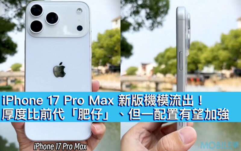 Mobile Magazine 短評:新機模讓 iPhone 17 Pro Max 外觀更厚實同時,又傳框體或採金屬配玻璃拼接機殼部份,如屬實或因金屬佔比更高而讓機重增加。