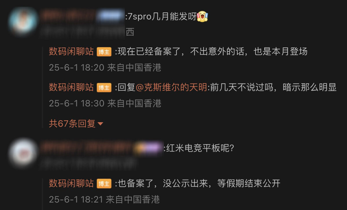 至於 Xiaomi Pad 7s Pro 12.5 的推出日期,據爆料人回應網友提問資訊,參考其已在國內獲入網備案,如無意外可望同樣能在六月正式推出。