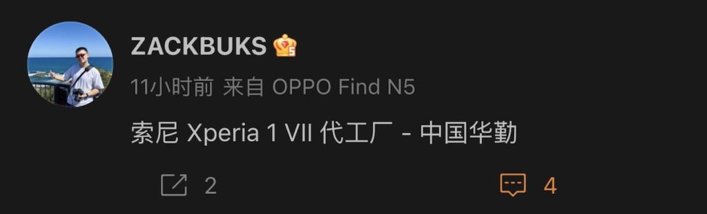 數碼博主 ZACKBUKS 在其微博帳號透露,在關閉泰國工廠生產線後,SONY 將 Xperia 1 VII 手機交由國內智能手機 ODM 龍頭企業、中國華勤技術代工。