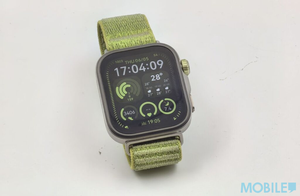 HUAWEI WATCH FIT 4 Pro 具備綠、藍及黑三色選擇,外殼以鈦合金物料製成、堅固耐用又對應 5ATM 防水HUAWEI Fit 4 Pro 重量僅30g(不含錶帶),厚度9.3mm,配備3000nits峰值亮度1.82 吋 AMOLED 彩色觸控式藍寶石玻璃屏幕(480 x 408),陽光下仍清晰可見。筆者上手配戴後,覺得輕巧沒有其他智能手錶笨重的感覺。