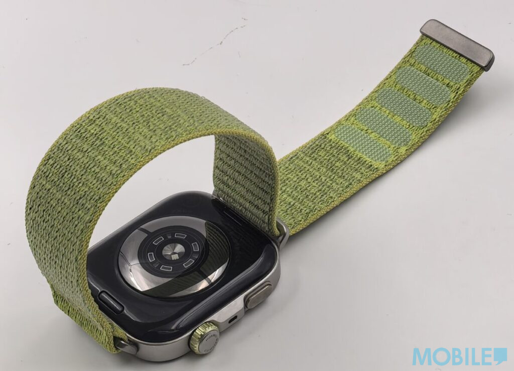 ▲而今次上手是綠色版本,錶帶改用了編織物料。而改用魔術貼固定。