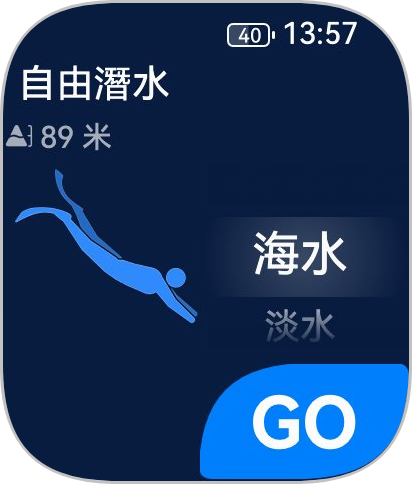 ▲而於潛水模式中,Fit 4 Pro 能支援最深40m潛水,並提供自由潛水模式,為用戶提供深度及速度等實時指標。