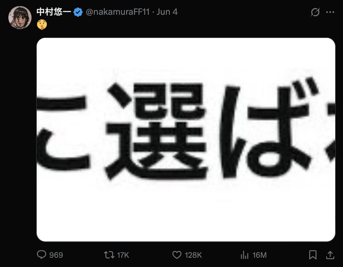 不過,中村於周二(3日)就在X發布了一張螢幕截圖,截圖中只有「選」一字,令網民猜測他是否成功抽到Switch 2的購買名額。而翌日(4日)他又發布了另一張螢幕截圖,今次的截圖就有「に選ば」的字樣,有同樣抽到購買名額的網民就貼出自己的購買確認信,表示信息與中村的螢幕字眼相似,推測中村今次終於抽到Switch 2。