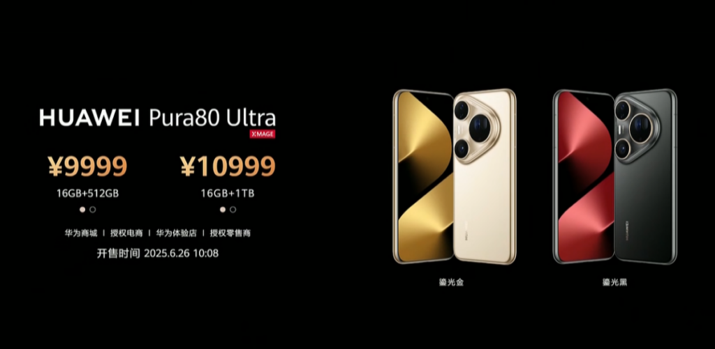 HUAWEI Pura 80 Ultra 將於6月26日正式開售,16GB+512GB版本定價9999元人民幣,頂配的16GB+1TB版本售價10999元。