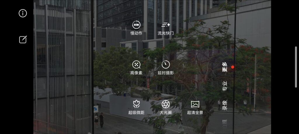 慢動作、流光快門、高像素跟超級微距等功能,置於「更多」分頁中
