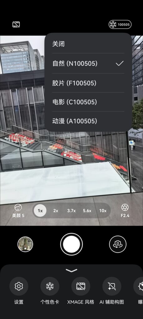 HUAWEI Pura 80系列創新推出「個性色卡」系統,提供自然、膠片、電影、動漫四種風格預設,並支援拍攝前後即時參數調整。新增的AI構圖輔助與反光消除功能,大幅降低了專業級影像創作的門檻。
