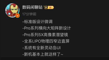 預計微調包括機背蘋果標認下移,預載全新靈動島 UI 同時、全系四機均擁有 LIPO 物理四邊窄邊框直屏規格;Pro 系列更加入強勁 5x 高像素潛望長焦。