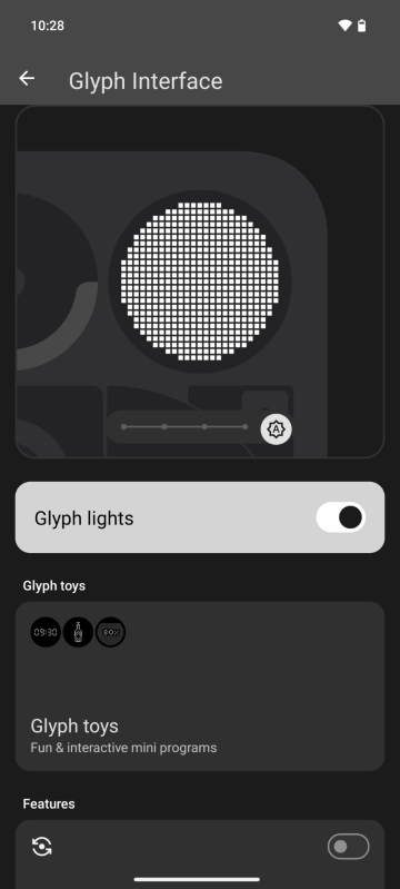 ▲Nothing OS 內設有 “Glyph Matrix” 燈光介面,用戶可以自行設定,通知或載入 Glyph Toys 的圖案作。