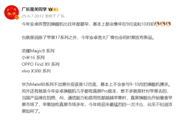 外觀設計上,多位數碼博主爆料指出 X300 系列將延續現款 X200 系列的經典圓形攝像頭模組設計,但在細節處理和材質選擇上會有所升級。按照 vivo 以往的產品節奏,這款備受期待的新機系列預計將於今年 9 月底或 10 月初正式亮相,屆時將與 iPhone 16 系列等旗艦機型展開正面競爭。