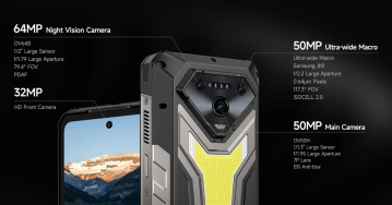 攝影系統更是 Ulefone Armor 34 Pro 的亮點所在,配備四鏡頭組合包括 5000 萬像 OV50H 主鏡頭採用 1/1.3 吋大感光元件與 F1.95 大光圈 + 6400 萬像 OV64B 夜視鏡頭擁有 F1.79 光圈並支援相位對焦 + 5000 萬像 Samsung JN1 超廣角鏡頭及再加上 3200 萬像前置鏡頭。