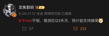 其中早在 6 月下旬就有消息傳出、或稱為 Mate mini 的 HUAWEI 細平板,將可能配備與 REDMI K Pad 同級 8.8 吋螢幕、支援蜂窩網絡並可能在第 3 季尾推出。