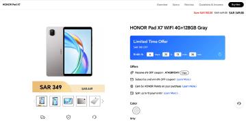 據 HONOR Pad X7 產品專頁資訊,其提供 4+128 配置 Wi-Fi 版灰色款單一選項,首賣價 349 沙地阿拉伯利雅(約港幣 $730),正價約 $940 港元左右。