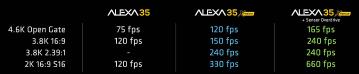廠方表示,ALEXA 35 Xtreme和ALEXA 35一樣動態範圍達到17級,相信繼續有優異畫質,新機今次最大賣點是frame rate提升,標準模式最高可達330fps(Super 16格式),在Sensor Overdrive 超頻模式下,更飆升至最高660 fps,成為ARRI歷來最快的電影機型。