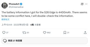 不過,Ice Universe 亦提到,目前關於 Galaxy S26 Edge 電池規格的資訊存在矛盾,因此建議大家暫時持觀望態度。畢竟在官方正式公佈前,一切仍有變數。