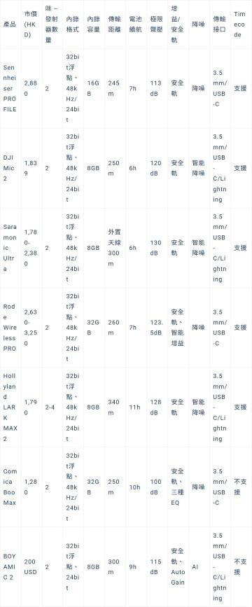 至於Rode Wireless PRO 屬專業製作取向,32GB 內錄容量高於同行,音色更厚實,支援時間碼、錄音安全軌、智能增益和多機同步,屬少數在嚴苛採訪活動、商業片都推介的一款。
