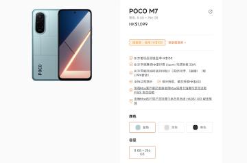 本文刊登時 POCO M7 已在小米香港官網上架,其具藍銀黑三色選擇,統一提供 8+256 配置,售價 $1,099如在 8 月 31 日前出機,可領券 $100 到手價 $999。