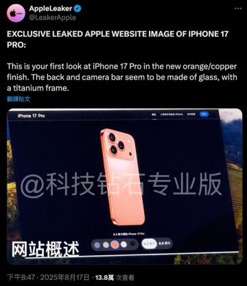 外媒 AppleLeaker 早前透過 X 帳號,上傳疑似 iPhone 17 Pro 產品官網的翻拍照片,當中包括傳聞中加入新色款的 iPhone 17 Pro 機背渲染圖。