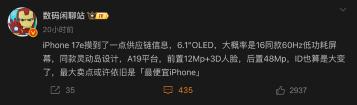 關於 iPhone 17e 消息來自國內爆料達人「數碼閒聊站」,其較早前在微博帳號透露,供應鏈方面傳出裝置將沿用 6.1 吋 OLED 螢幕,並同樣僅具 60Hz 更新率。