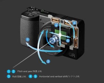 GR IV 內建 SR(Shake Reduction)防手震功能,可在按下快門瞬間補償手震影響。配合升級版演算法,這套五軸防震系統在一般拍攝時能減輕因俯仰、水平偏移與旋轉造成的影響,更能在拍攝close up時有效減少平移震動,防震效果最高可達 6 級快門補償。