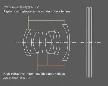 GR IV 搭載全新設計的 GR LENS 18.3mm F2.8,等效 35mm 格式的 28mm 視角與 F2.8 大光圈,鏡頭結構採用 5 組 7 片光學鏡片,其中包含玻璃鑄模非球面鏡片(末組鏡片為大口徑非球面元件)以及高折射低色散玻璃鏡片,廠方稱,可實現由中心至邊緣皆清晰銳利的高對比、高解析影像,同時有效抑制變形與色差。