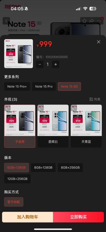 本文刊登時 REDMI Note 15 已開放預售,其提供子夜黑、星輝白及天青藍色款,擁有 6+128、8+128、8+256 跟 12+256 四種儲存配置,售價 999 人民幣起。