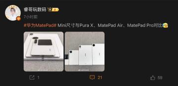 【MOBILE】將於新三摺 Mate XTs 在 9 月4 日(週四)同場現身的 HUAWEI MatePad Mini 細平板,較早前有疑似實機比較照片流出,可看到其於同廠 Pura X 闊摺屏、MatePad Air 及 MatePad Pro 大小對比。