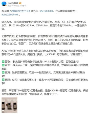 【MOBILE】近期備受關注的 vivo 新一代影像旗艦 X300 Pro,其相機規格細節持續曝光。繼早前傳出將採用 SONY LYT-828 1/1.3 吋主感光元件後,最新消息確認其潛望式長焦鏡頭將配備一款由 vivo 與 SAMSUNG 深度訂製、並享有獨家使用權的 2 億像感光元件 ISOCELL HPB「Thanos」,配合多重光學升級,將手機遠攝能力推向新高峰。