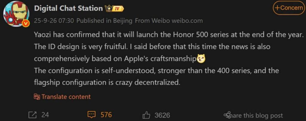 據知名微博爆料人 @DigitalChatStation 指出,HONOR 已確認會在年底前推出 500 系列,並強調其擁有「美麗的設計」。回顧過去幾代數字系列,HONOR 一直堅持使用不規則形狀的幾何相機模組,雖然獨特且具高辨識度,但據傳在 500 系列上,這個標誌性設計可能會被重新構思。