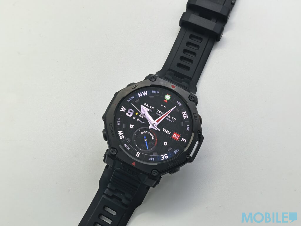 Amazfit T-Rex 3 Pro 提供 48mm 與 44mm 兩種尺寸,分別配備 1.5 吋與 1.32 吋高清 AMOLED 屏幕,峰值亮度提升至 3,000 nits。我們在烈日下實測,屏幕訊息仍清晰易讀,不受強光反射影響。屏幕升級為藍寶石玻璃,硬度僅次鑽石,有效抵抗岩壁擦碰與日常刮擦。錶圈採用鈦合金材質,兼具高強度與輕量化,加上加厚的抗撞結構與密封防護,確保手錶在高溫差、濕熱與塵沙環境下穩定運作。