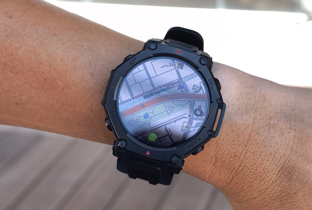 比起上一代,T-Rex 3 Pro 的地貌圖與等高線顯示更精細,操作直觀簡單,對不熟悉匯入 GPX 路線檔案的初學者非常友善。此外,手錶在錶冠上方新增雙色照明燈,實測中長按左上方實體鍵即可啟動。