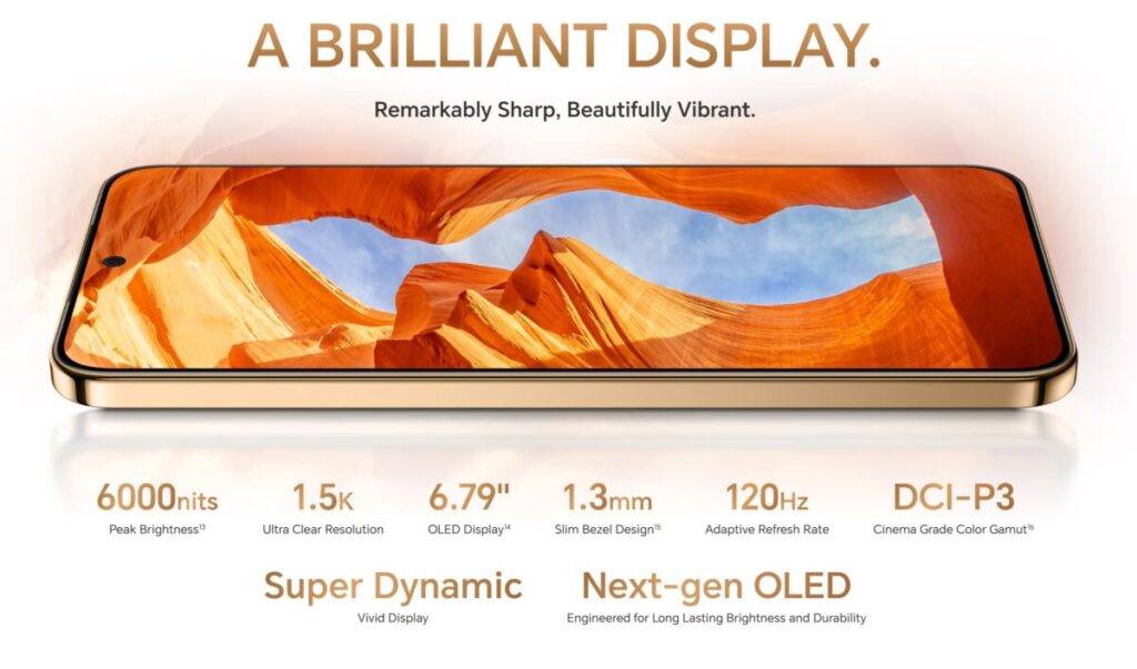 Honor X9d 採用一塊 6.79 吋 FHD+ AMOLED 顯示螢幕,支援 120Hz 高刷新率,確保流暢的滑動與遊戲體驗。螢幕支援高達 6000 nits 的峰值亮度,這意味著即使在強烈的陽光下,螢幕內容依然清晰可見。