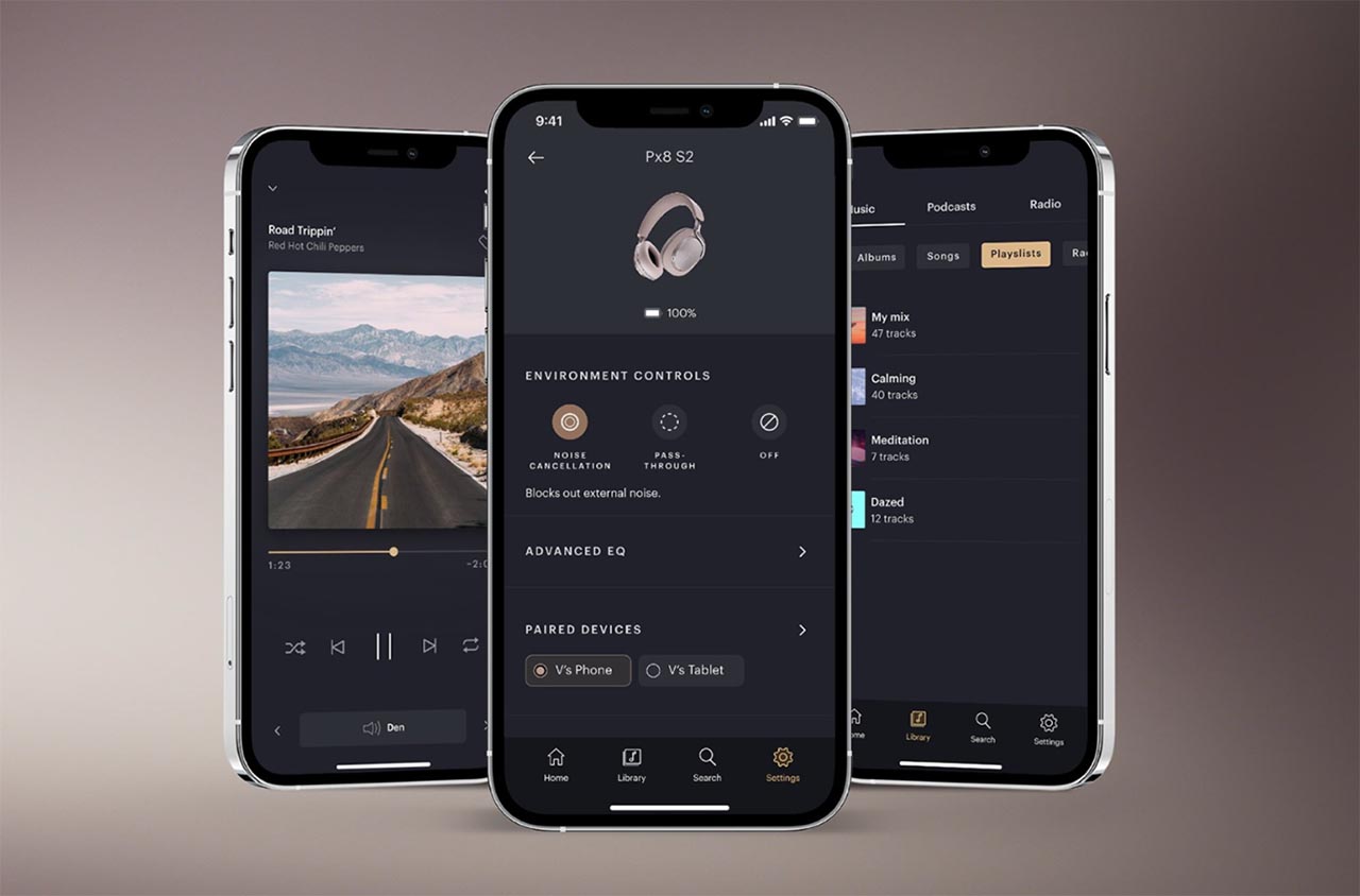Px8 S2 升級了藍牙到 5.3 標準,加入支援更多高解析無線格式,包括aptX Adaptive(24-bit / 96kHz) 及 aptX Lossless,讓用戶在串流服務(如 Amazon Music、Qobuz、TIDAL)中得到最佳音質。所有功能皆可透過 Bowers & Wilkins 的 Music App 直接串流控制。此外,Px8 S2 也支援 USB-C 數位音訊輸入 與 3.5mm 耳機線輸入,兩種音訊線皆附贈於隨附收納盒中,適用於筆電、支援AptX 藍牙連線的Android 裝置,DAP等多種裝置,又或者在飛行旅程中配合機內娛樂系統使用。
