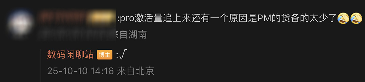 博文中有網友指 Xiaomi 17 Pro 最終激活量能反超 Xiaomi 17 Pro Max 手機,主要是因為後者備貨不足之故,爆料人予以認同,似乎裝置表現已超出小米預期。