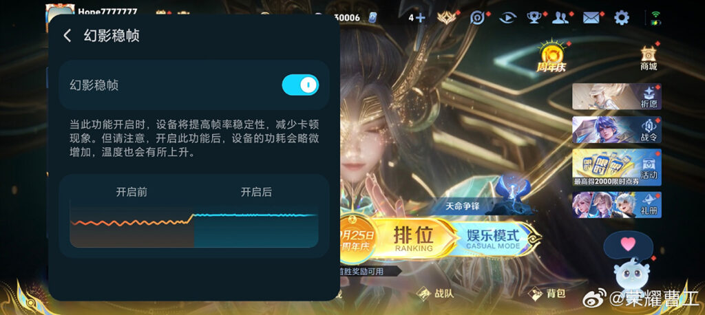 據透露 12 款熱門遊戲如《王者榮耀》、《原神》、《崩壞:星穹鐵道》、《鳴潮》、《三角洲行動》跟《穿越火線》等作,均支援「幻影穩幀」功能。