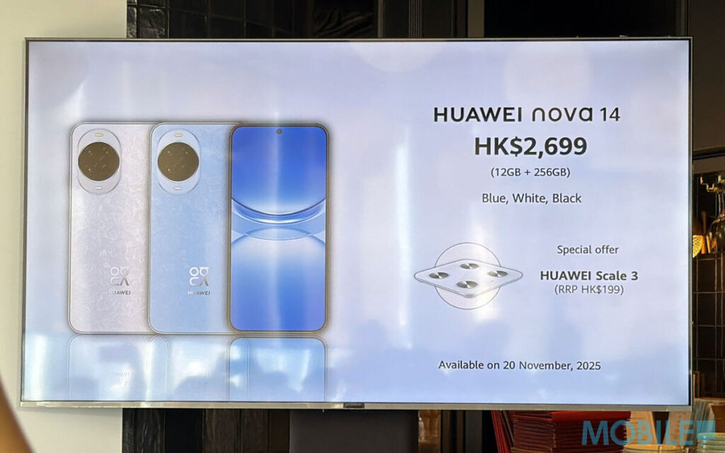 價格方面,標準版 nova 14 同具冰晶藍、凝霜白與羽砂黑色款選擇,統一提供 12+256 選擇,售價為 $2,699 港元,兩機均在 11 月 20 日正式開賣。