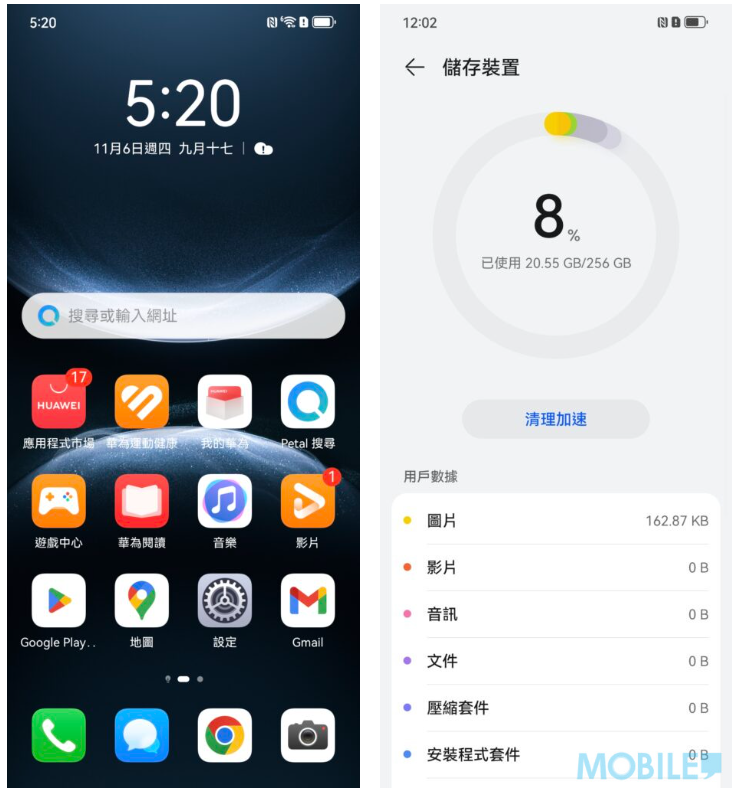▲nova 14 於軟件上搭最新的 EMUI 14.2,港版就提供了256GB 版本,扣除 EMUI 14.2 系統後,用戶仍有約 235GB 空間可使用,以中檔次手機來講算是相當足夠。此外,nova 14 上的 EMUI 14.2 透過安裝”microG”後,可完整使用 Google 服務。