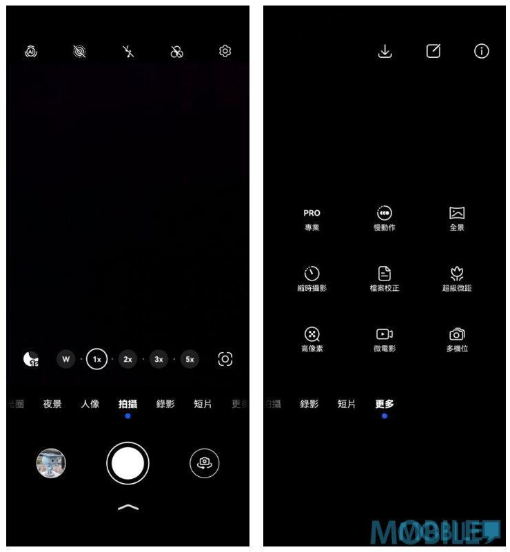 ▲拍攝介面與HUAWEI 旗艦手機相似,同樣設有夜景、人像、大光圈、超級微距及專業模式等供用家選項。