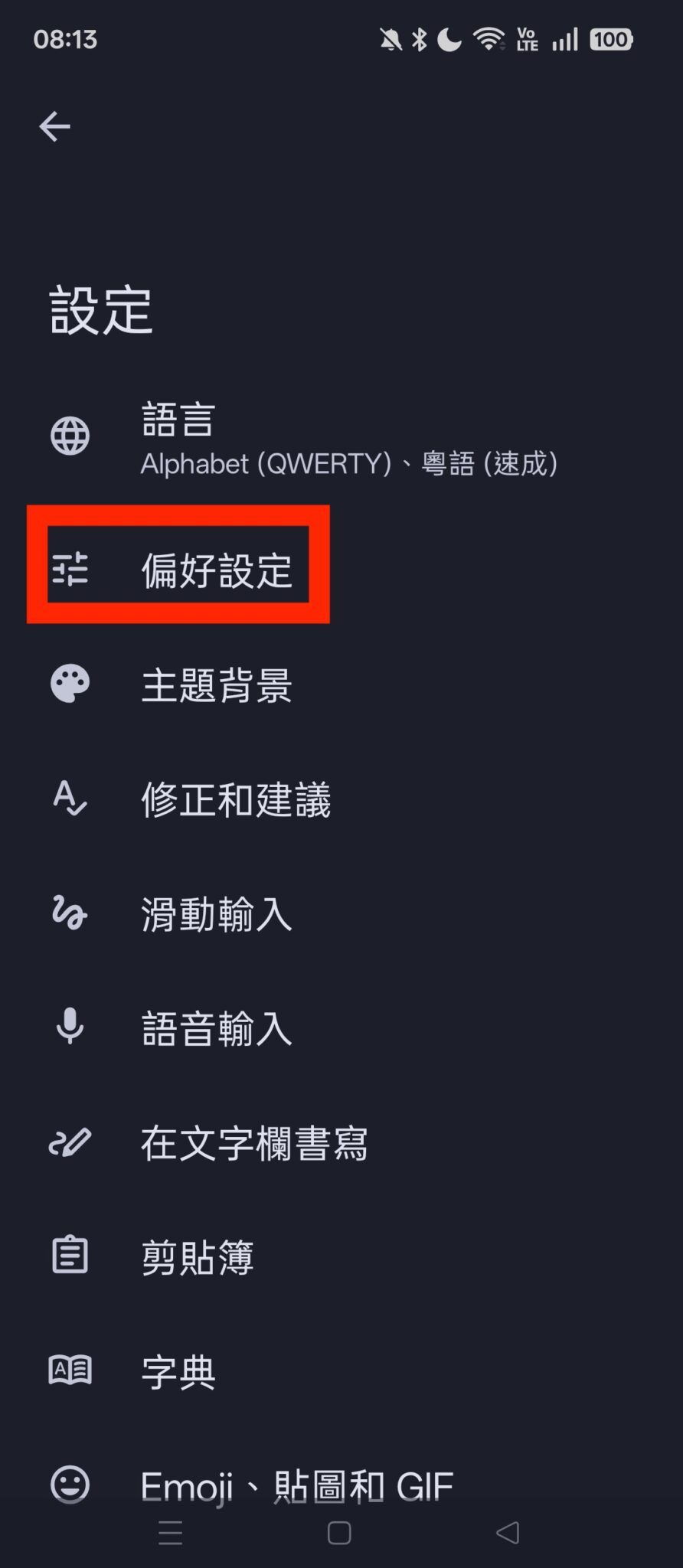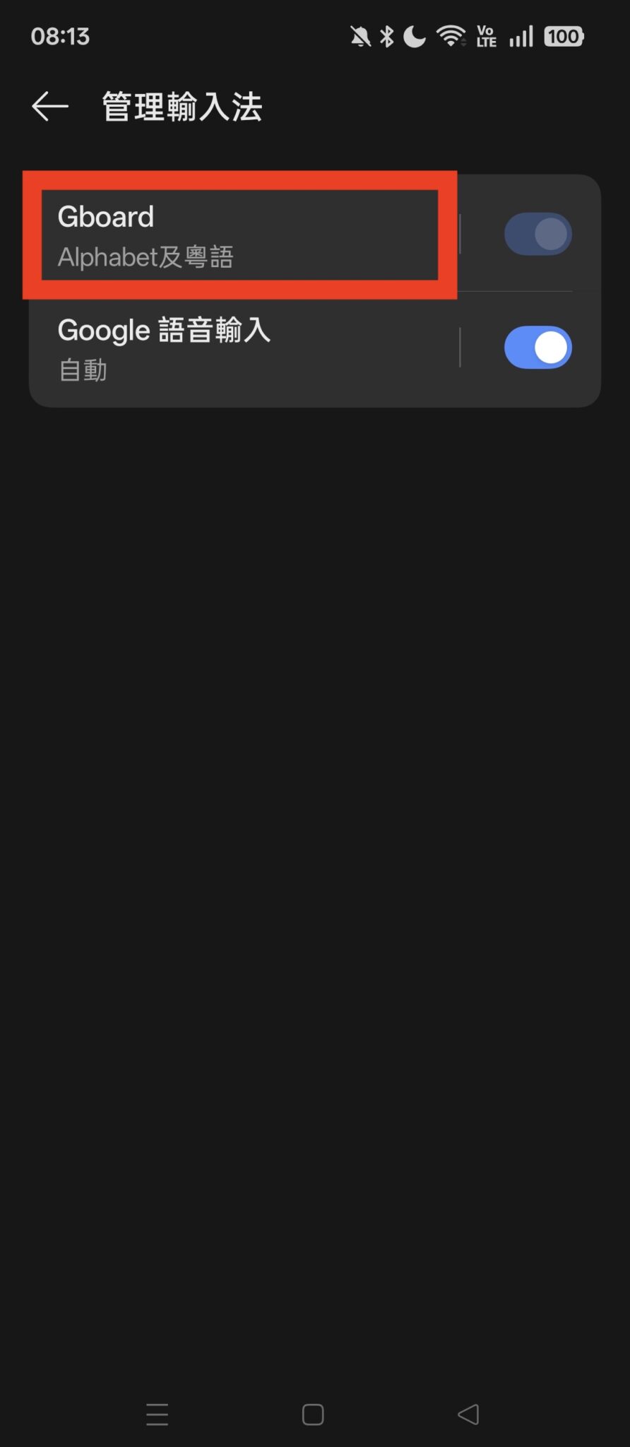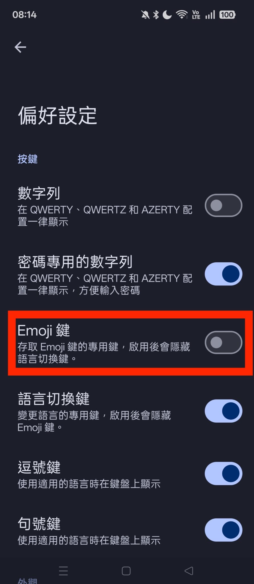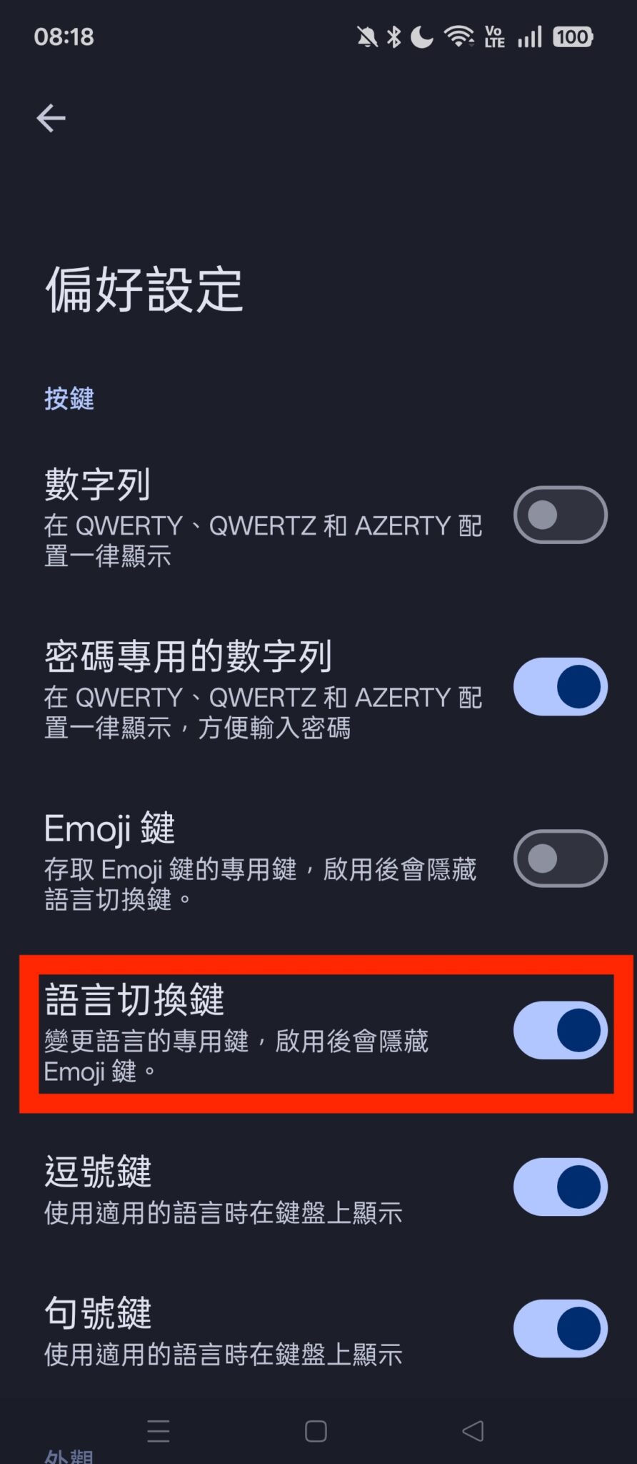 完成後再喚出 Gboard 鍵盤,即可看到「地球鍵」再次在鍵盤上顯示。