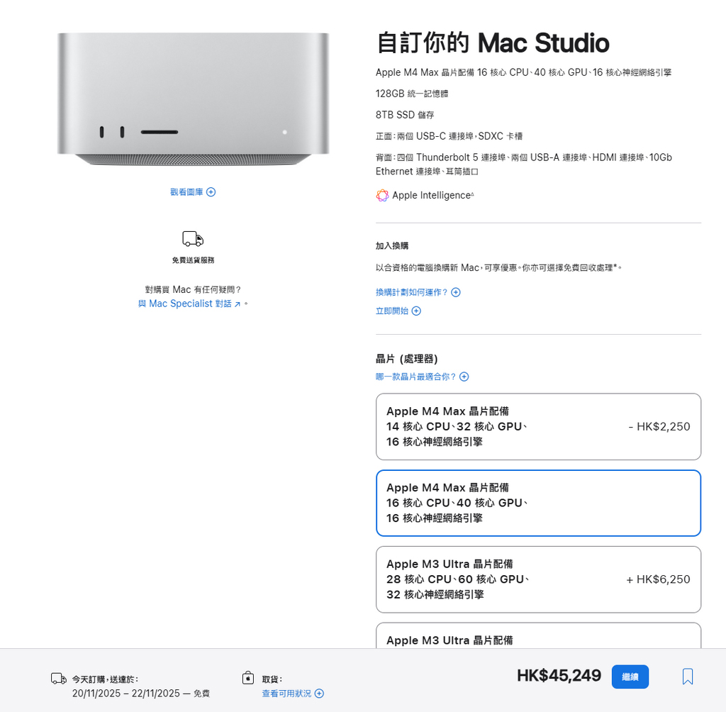而目前發售的 Mac Studio,最新使用 M4 Max 處理器,基礎版已經是 14 核 CPU、32 核心 GPU 及 16 核 NPU,36GB RAM,最多可加至 128GB RAM,售價為 $15,999 起。以性價比來說,其實 Mac Pro 已沒太多競爭優勢,《彭博》引述 Apple 內部的消息指,Apple 將會讓 Mac Pro 自然消失。取而代之的將會是採用 M5 Max 及 M5 Ultra 的新版 Mac Studio。