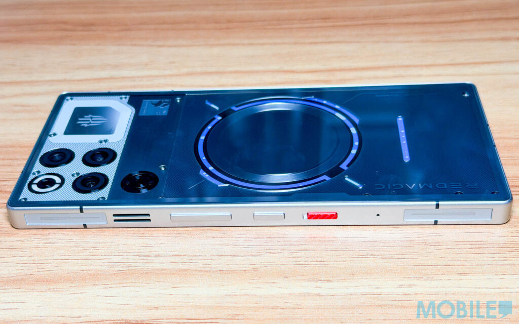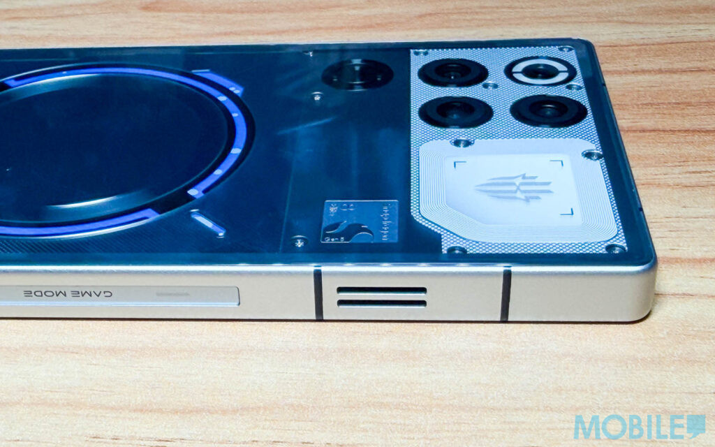 Redmagic 11 Pro 國際版保留 3.5mm 耳機孔、立體聲揚聲器支援 DTS 聲效,主要按鍵集中在機身右側,機側具風扇口但支援 IPX8 防水,生物保安升級超聲波屏幕指紋。
