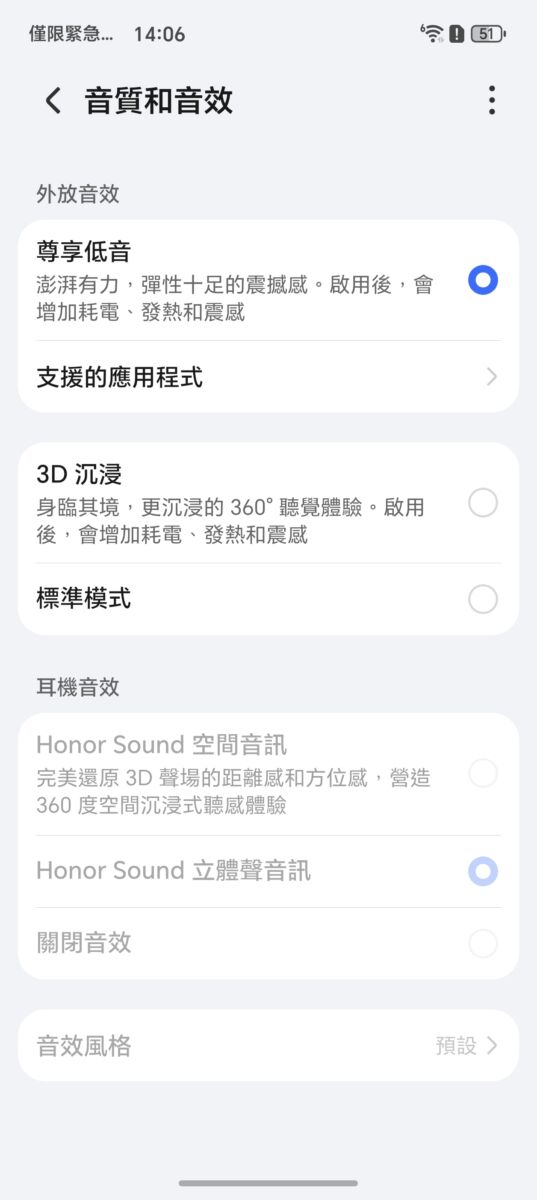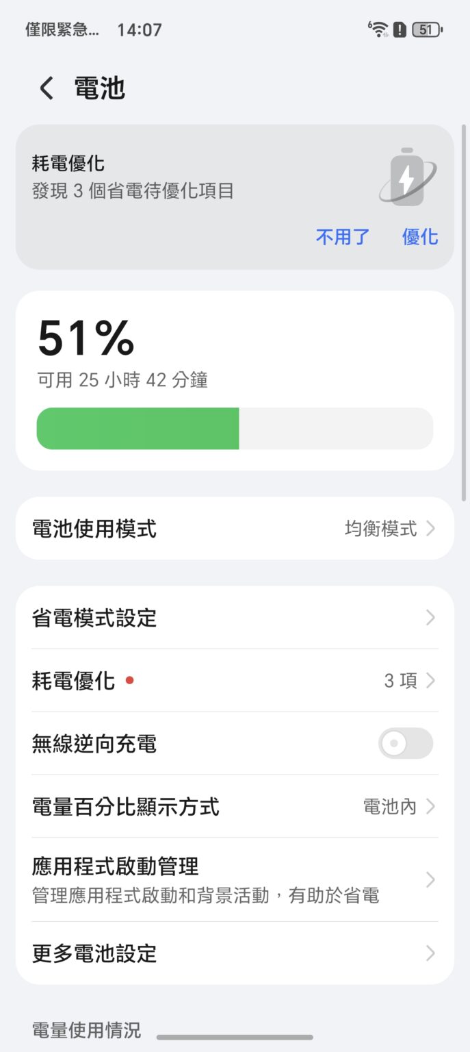 ▲ 在選項頁面「電池」部份,可選擇啟動「性能模式」提高裝置效能