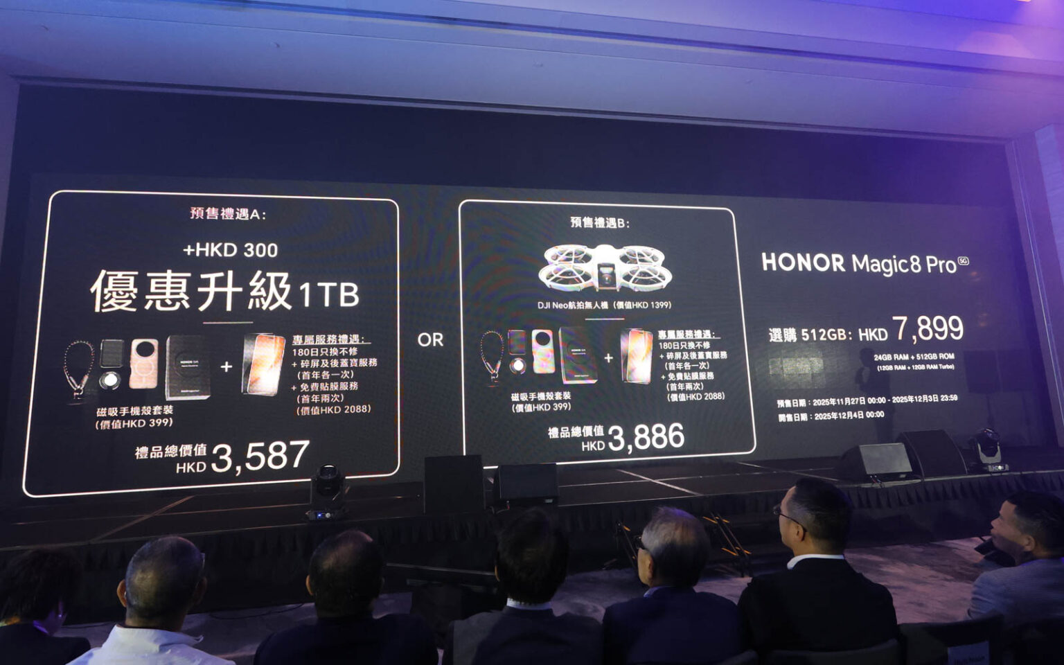 與此前一樣港版 HONOR Magic8 Pro 將提供預售優惠,由 11 月 27 至 12 月 3 日,成功預購可享達 $3,886 豐富禮遇(見下圖):