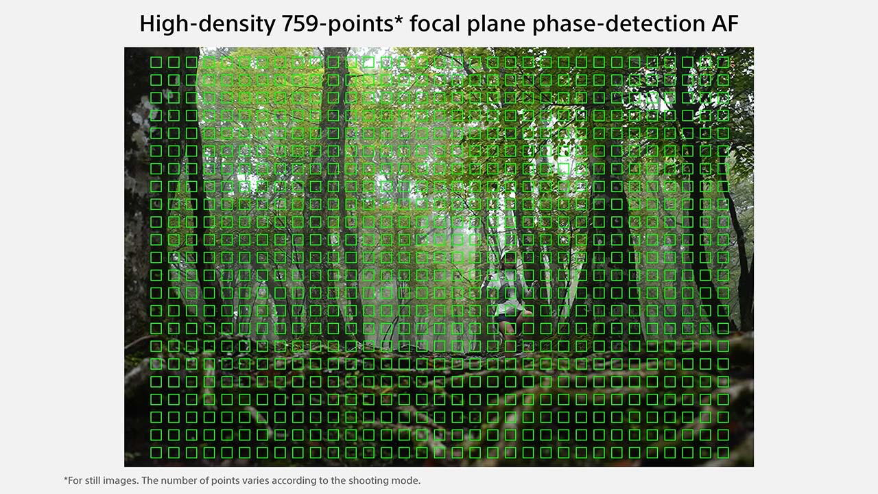 Sony a7 V 採用部分堆疊式 Exmor RS 感光元件設計,令感光元件讀取速度較上一代 a7 IV 顯著提升,有助減低果凍效應並改善高速連拍及錄影表現。透過 BIONZ XR2 處理器與 AI 處理單元結合,新機支援 759 點相位檢測自動對焦及實時追蹤,可自動偵測人物、動物、鳥類及車輛等多種主體,對焦反應和可靠度基本已追上 Sony 高階型號水準。
