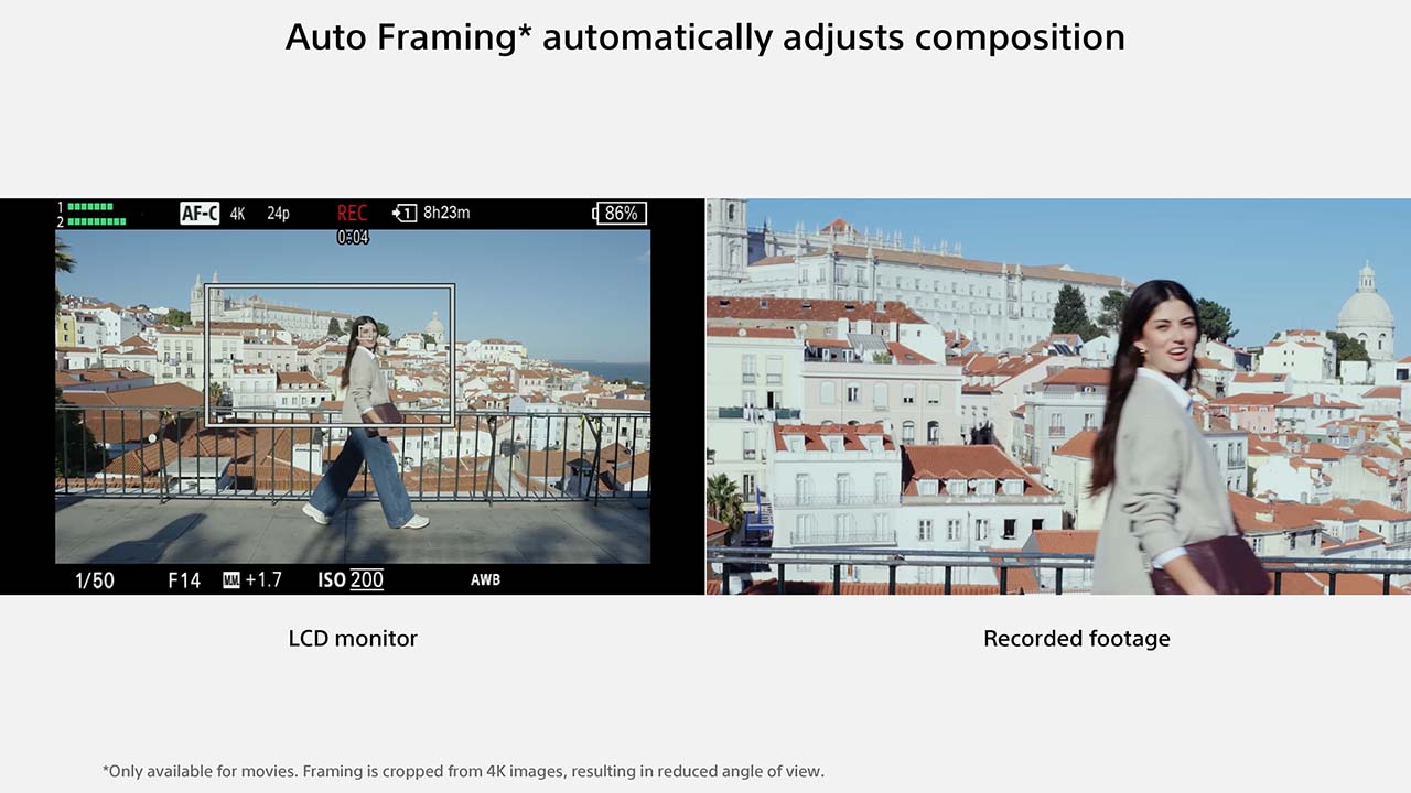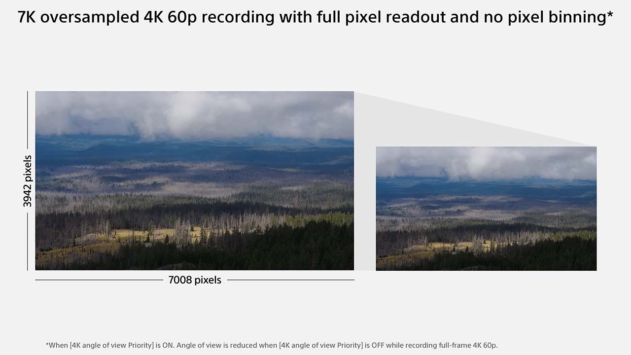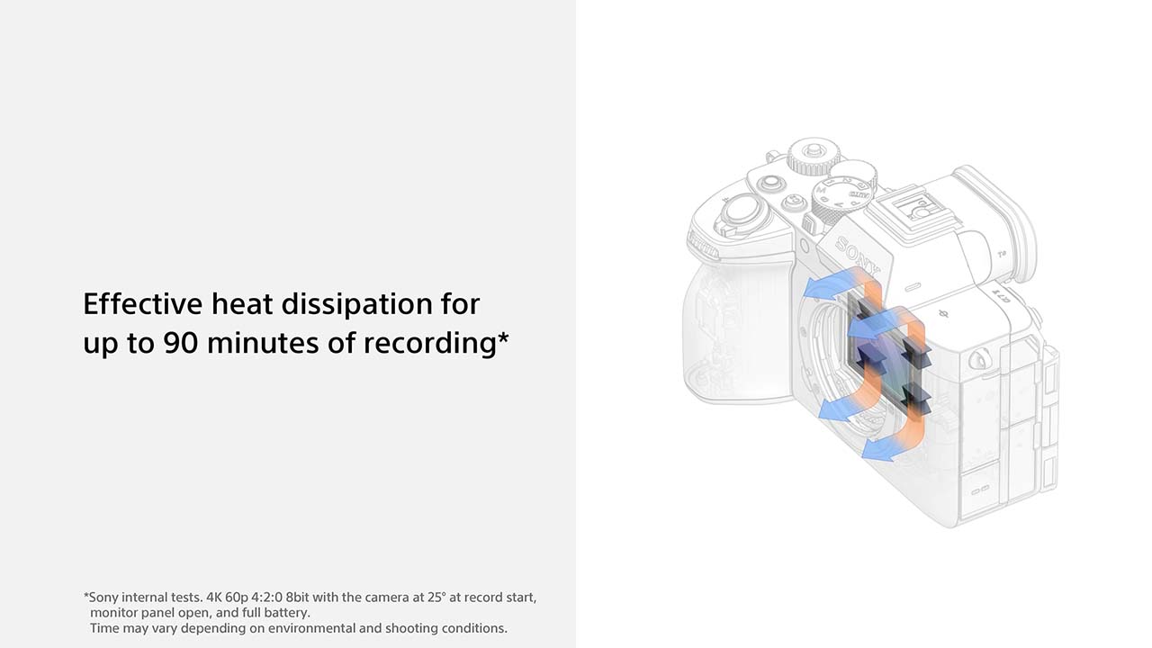 上代拍攝4K 60p影片會有1.5x 裁切為人詬病,今代用上部分堆疊式CMOS 感光元件提供高快讀取能力,終於實現全片幅4K 60p拍片。a7 V 支援經 7K 超取樣的全片幅 4K 60p 10-bit 4:2:2 錄影,並可在 Super 35 模式錄製 4K 120p 影片。新機提供 S-Log3、S-Cinetone、匯入自訂 LUT、鏡頭呼吸補償及強化電子防震等功能,配合 AI 自動構圖及更智能白平衡。散熱設計亦有所加強,在以小時計的長時間 4K 錄影不易過熱,提升專業拍攝穩定性。