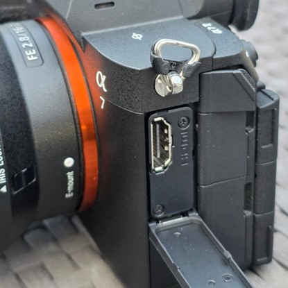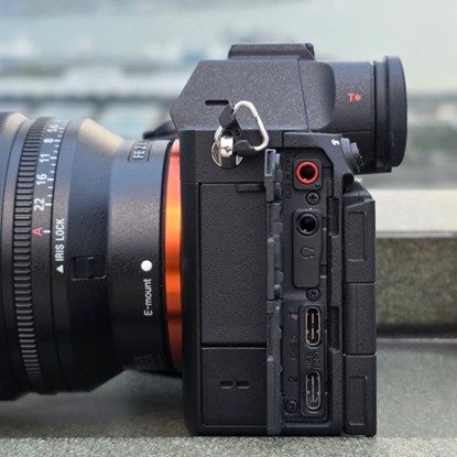 另一個 A7 V 在外表上的最大轉變,就是連接功能,由一個 USB-C (10 Gbps) 變成 2 個 (10 Gbps – 480 Mbps),取代沿用多年的 Sony Multi 插頭,以配合現時大部分配件都使用 USB-C 的趨勢,也可以邊充電邊進行PC資料傳輸,而今次的 USB-C 也支援2.5G LAN 傳輸,足以在 Studio 內即拍即傳相上NAS 或電腦。